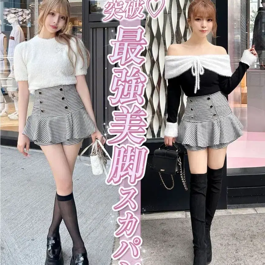 셰리미 cherimi 더블 버튼 슬림 레그 치마바지 블랙 x 화이트 S