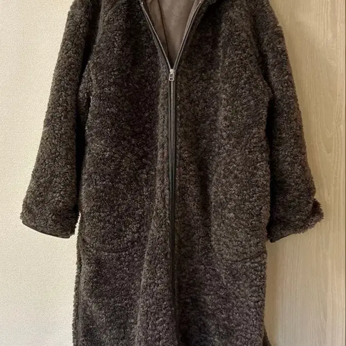 BEAMS HEART 후드 부착 보아 롱 블루종 안감 부착 브라운