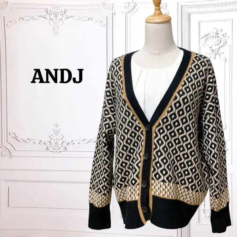 [앤제이] 니트 가디건 [F] 블랙 올 패턴 V넥 긴팔 두꺼운 원단