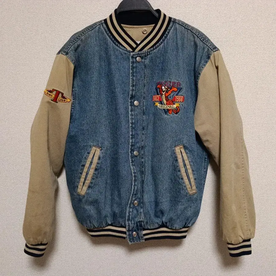 티거 자수 데님 바시티 자켓