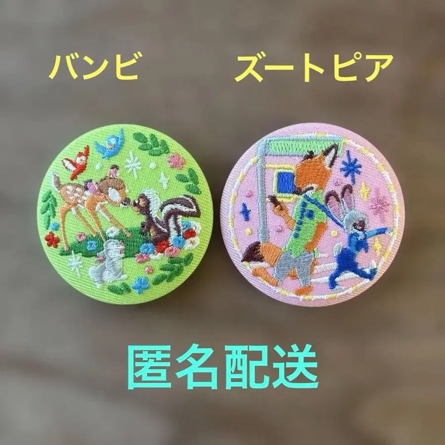 디즈니 자수 캔뱃지 2개 세트 주토피아 밤비