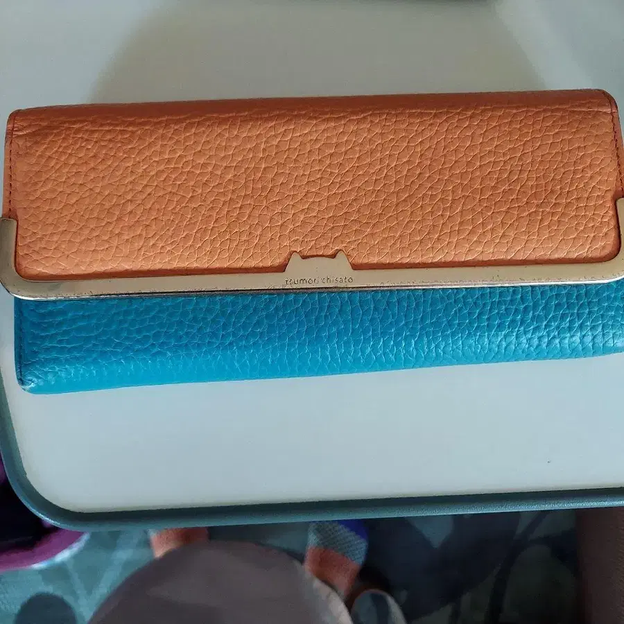 TSUMORI CHISATO 오렌지와 파랑 가죽 장지갑