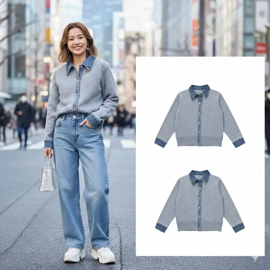 카라 부착 데님 절개 니트 가디건 에시카 ESICA 뤼미에 lumier