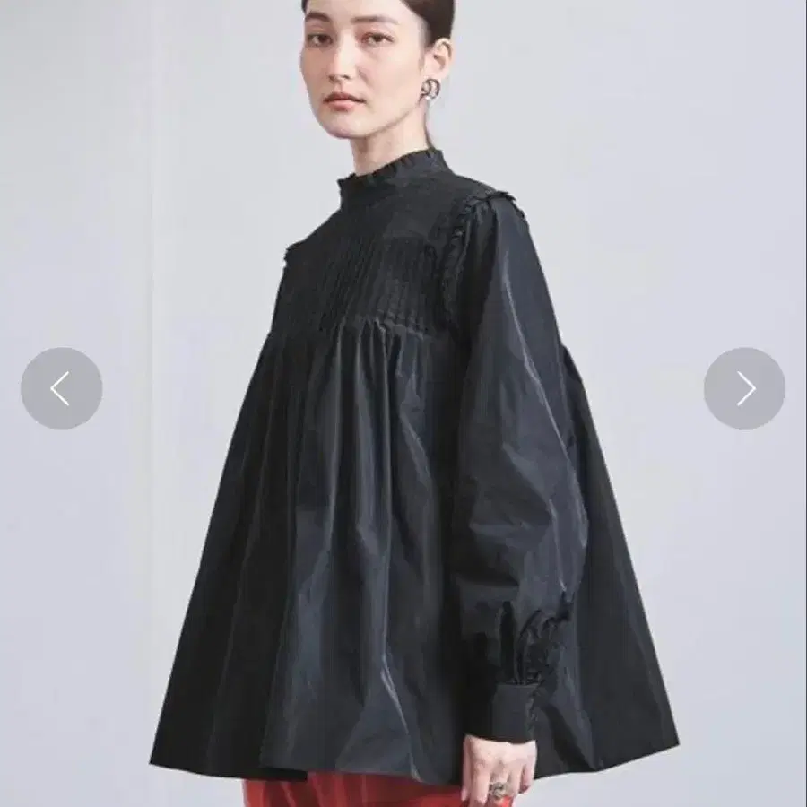 UNITED ARROWS P 타프타 프릴 하이넥 블라우스