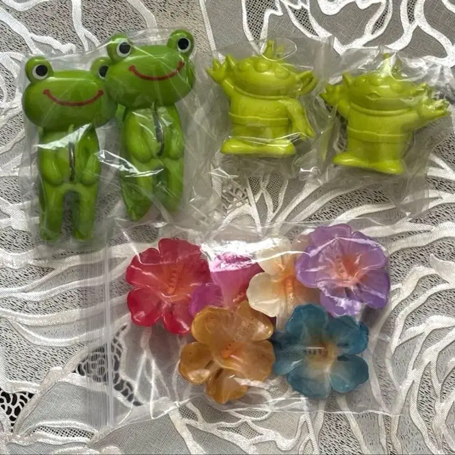 리틀 그린멘 개구리 꽃 빨래집게 클립 세트