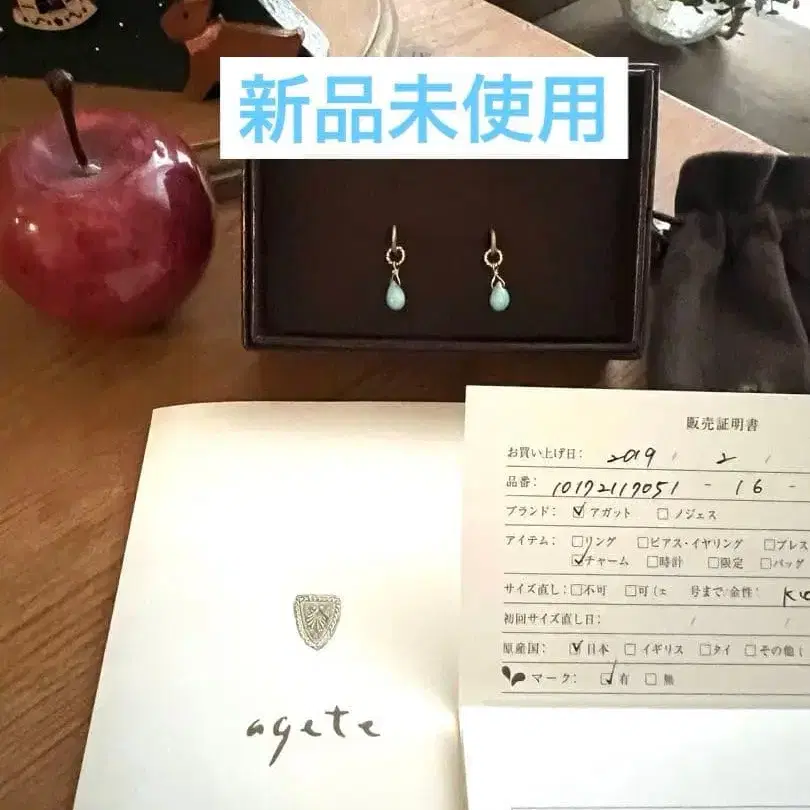 아가트의 라리마 귀걸이 참 미사용 10금 (인증서 포함)