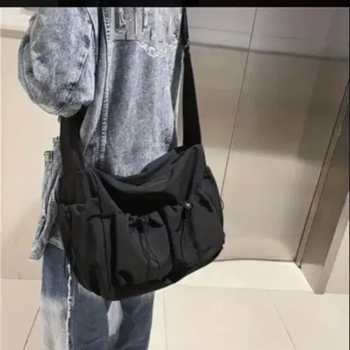 블랙 숄더백 프론트 포켓 부착