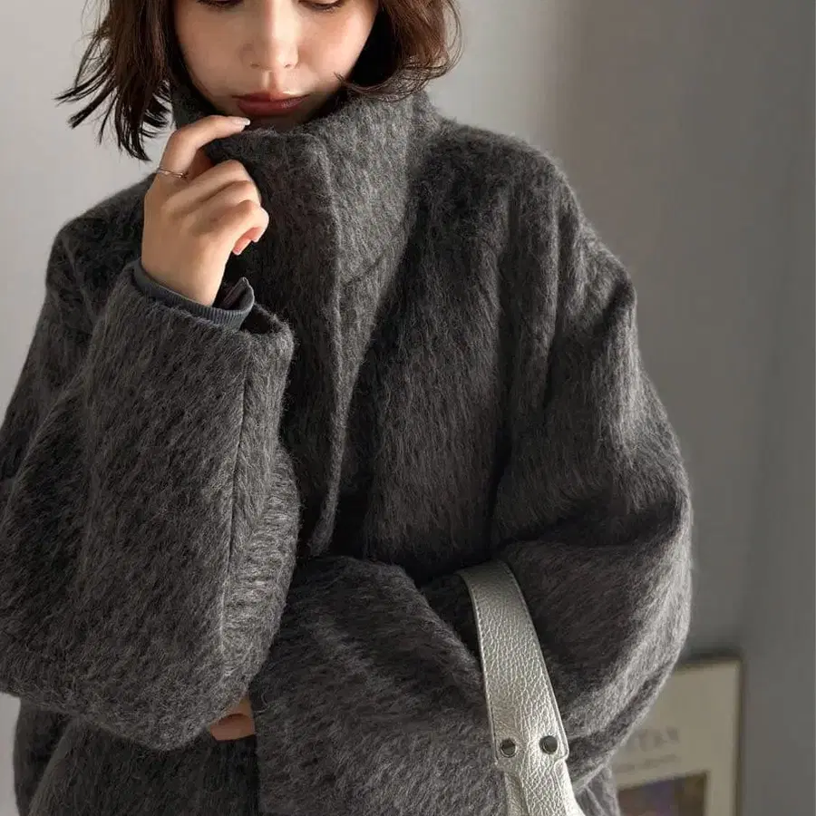 오버 사이즈 하이넥 코트 그레이