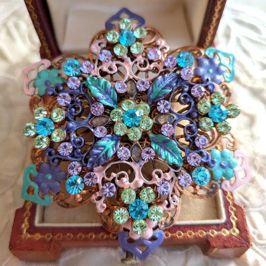 핑크 보라색 민트 그린 파스텔톤 에나멜 블루 반짝이는 비쥬 플라워 브로치