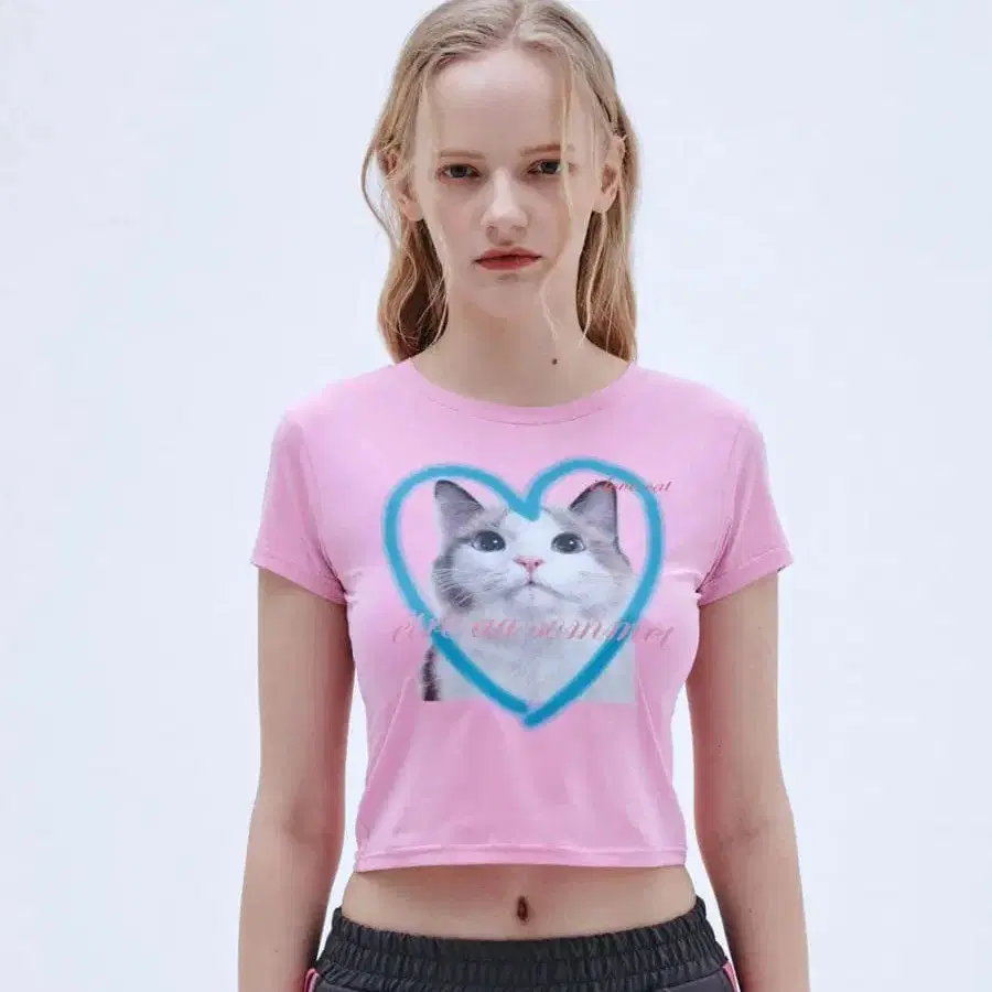 etre au sommet 하트 캣 페이스 하프 티셔츠 T셔츠
