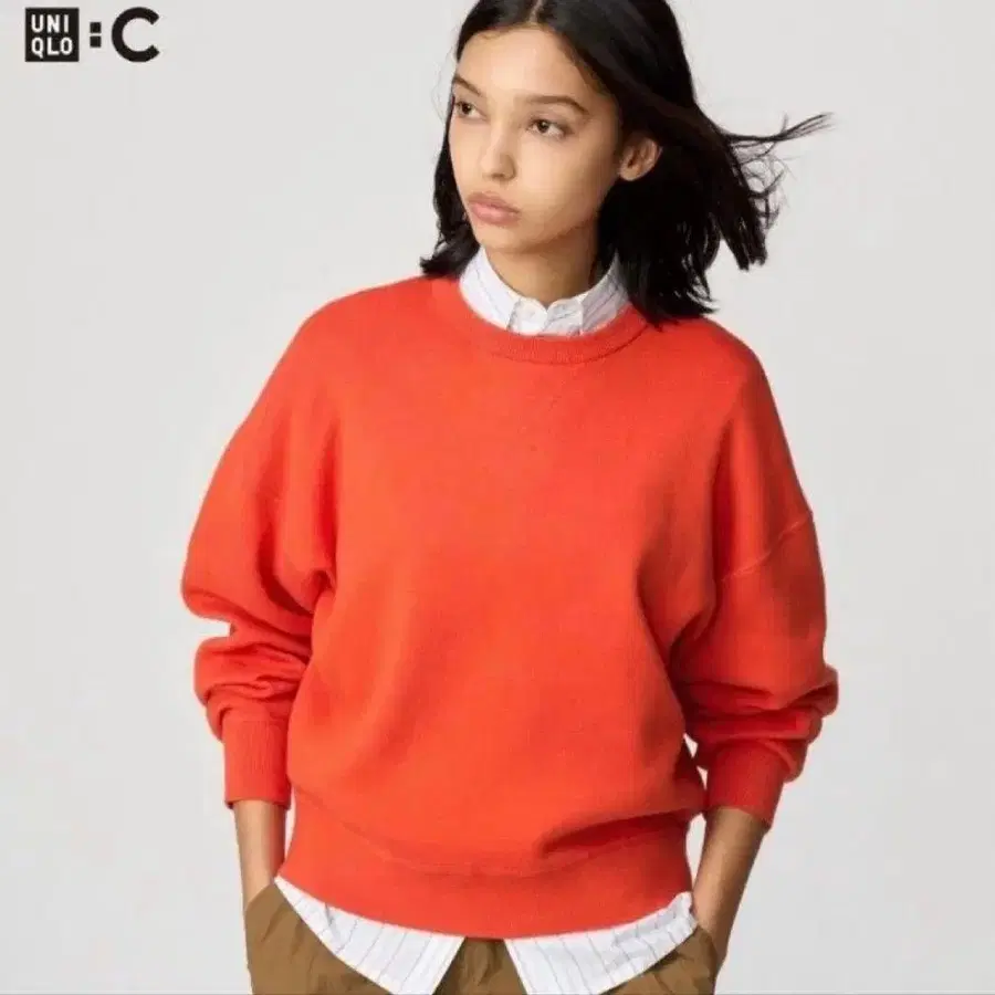 [ 새상품급 ] 유니클로C 완판 컬러 스무스 코튼 크루넥 스웨터 오렌지