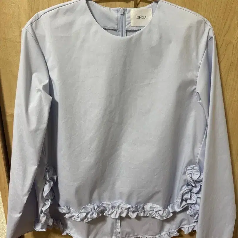 새상품급! 완판템 OHGA 오가 밑단 프릴 블라우스 스카이블루 컬러