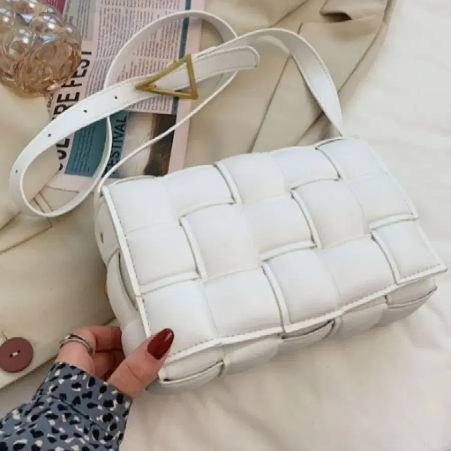 미사용 새상품 화이트 뜨개질 숄더백