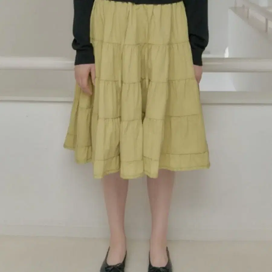GIUNON 볼륨 티어드 레이스 스커트 올리브