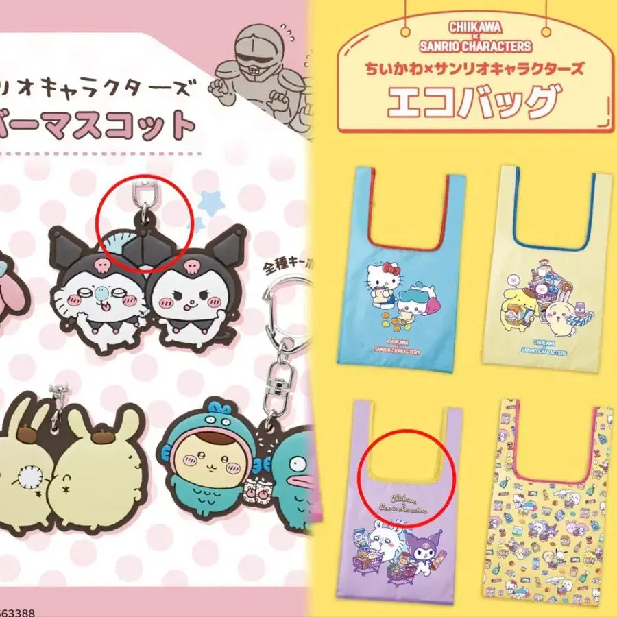 치이카와 x 산리오 에코백 친한 친구 러버 마스코트 모몽가 쿠로미