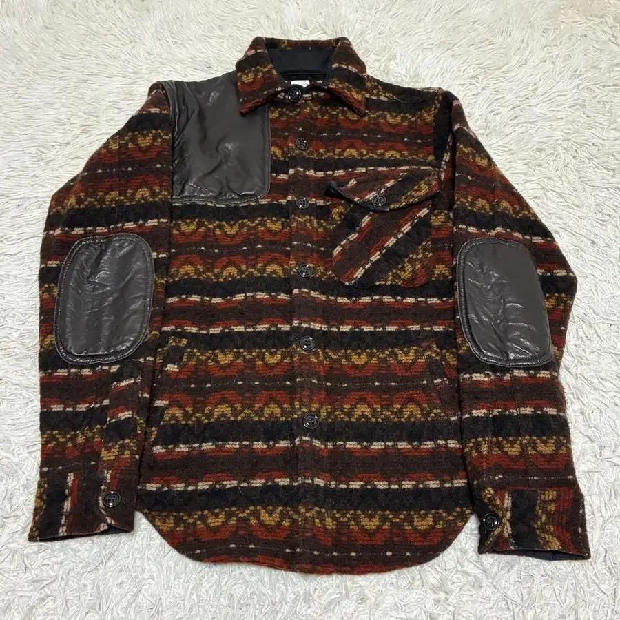 존슨 울 밀스 CPO 자켓 가죽 패치 체크 셔츠 두꺼운 원단