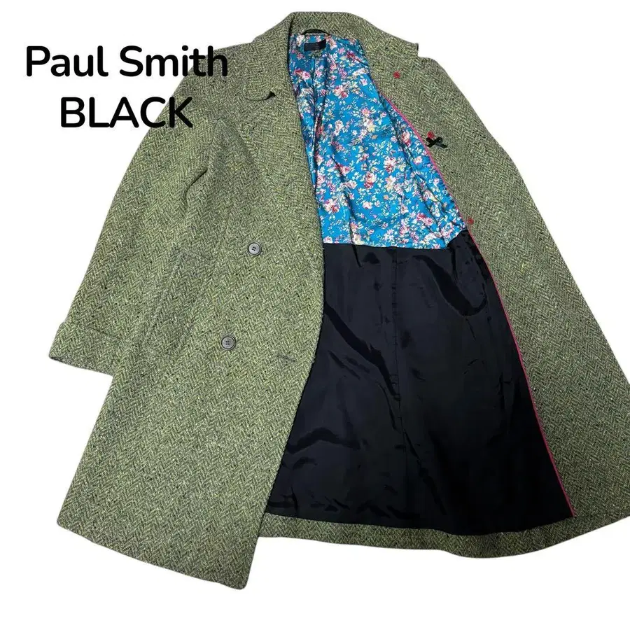 새상품급 폴스미스 블랙 롱 코트 트위드 그린 더블
