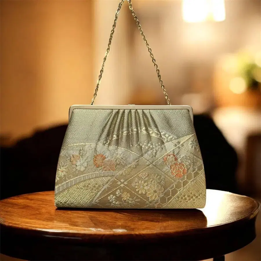 • 미사용 새상품 후리소데용 조리 백 세트 순수 실크 오비 원단 사용