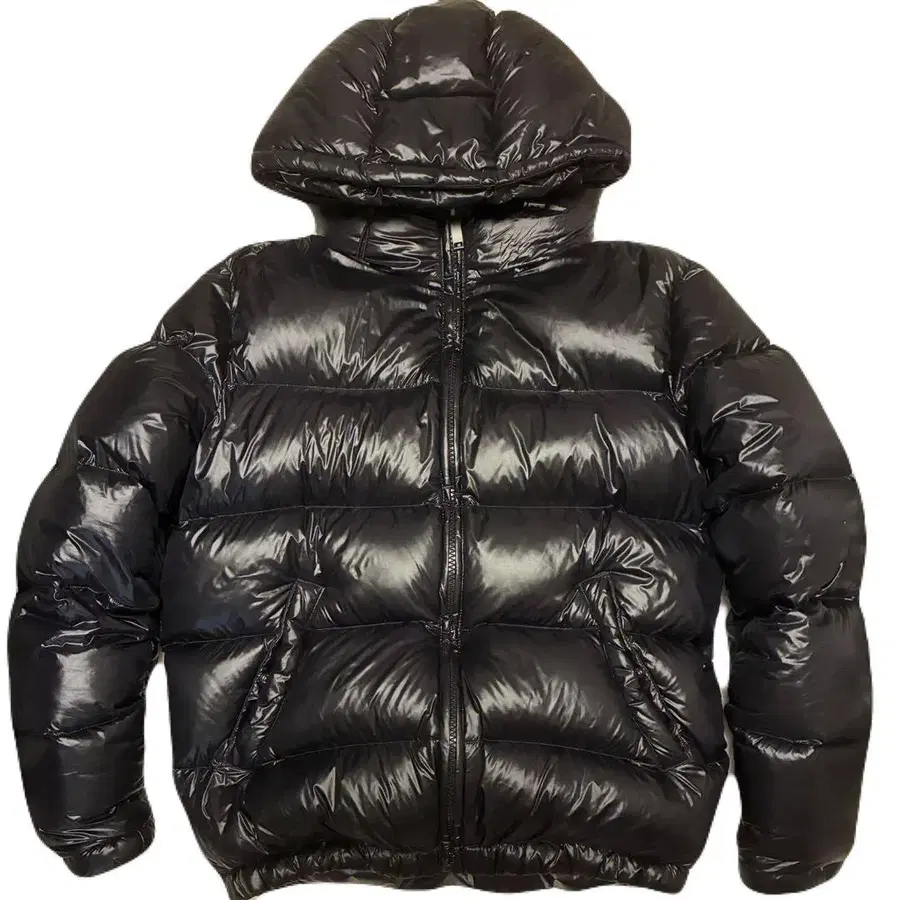 ZARA 자라 다운 블랙 번쩍이는 광택 후드 부착