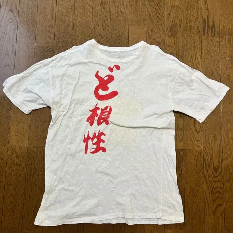 90s 명랑 개구리 뽕키치 T셔츠 L 상당 화이트 백 프린트