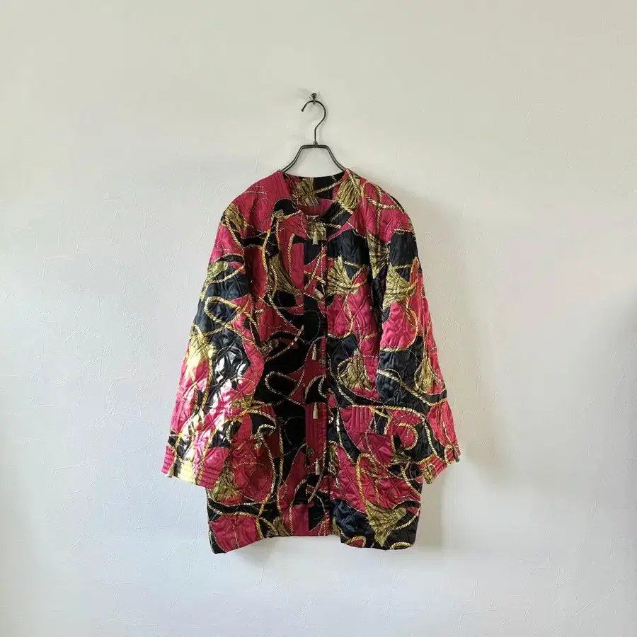 일본제 빈티지 노카라 코트 스카프 패턴 퀼팅 태슬 레트로