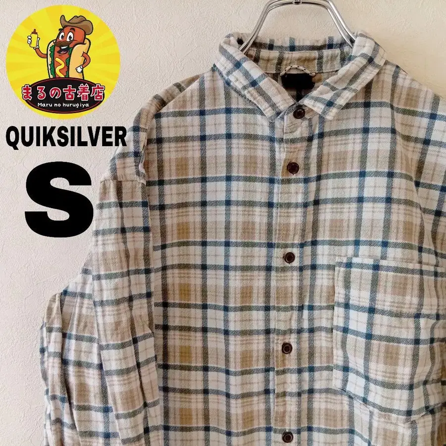USA 구제 의류 QUIKSILVER 플란넬 셔츠 S 블루 베이지 체크