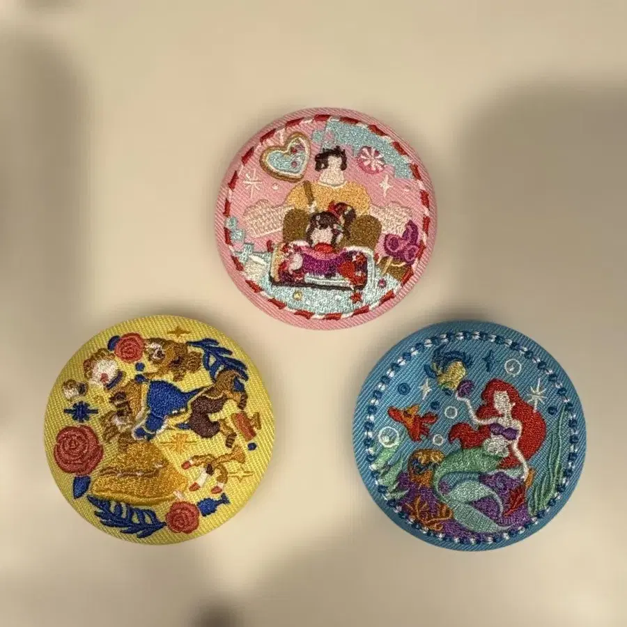 디즈니 자수 캔뱃지 세트 미녀와 야수, 슈가러쉬, 인어공주