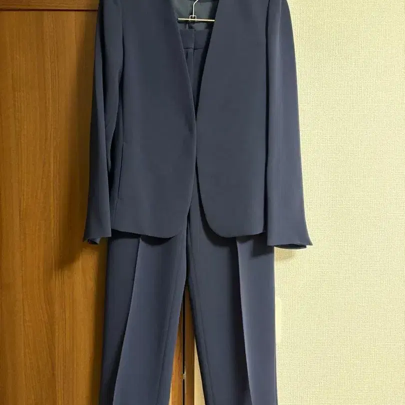 [ 새상품급 ] 플라스테 셋업 수트 노카라 와이드 팬츠 네이비