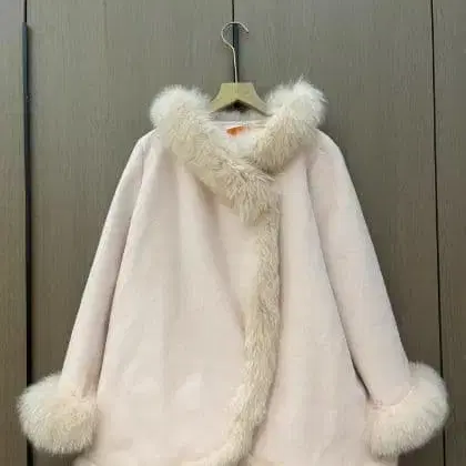 퍼 달린 핑크 플리스 코트