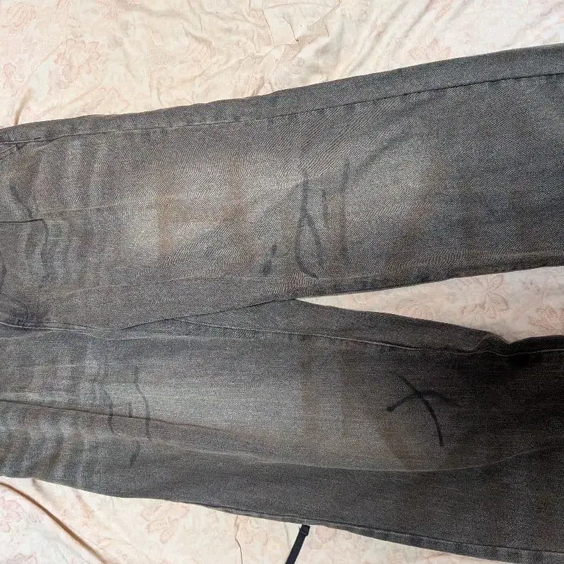 데미지 가공 다크 그레이 부츠컷 데님