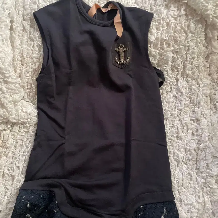 누메로 슬리브리스 미니 원피스 비쥬 레이스 마린