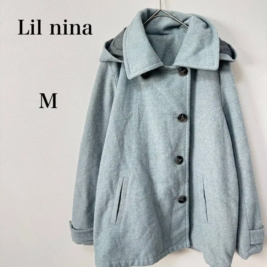 릴니나 피코트 숏 기장 숏코트 헤링본 패턴 M 라이트 블루