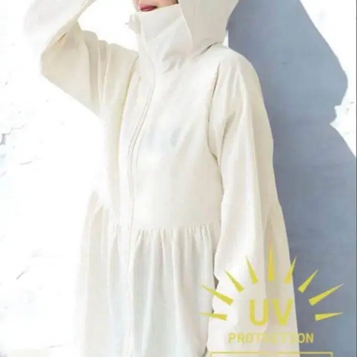 coca UV컷 개더 후드티 아이보리
