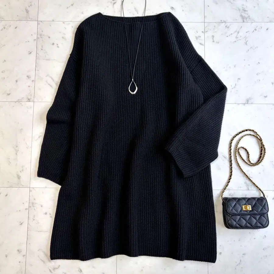 여유로운 실루엣의 니트 미니 원피스입니다.