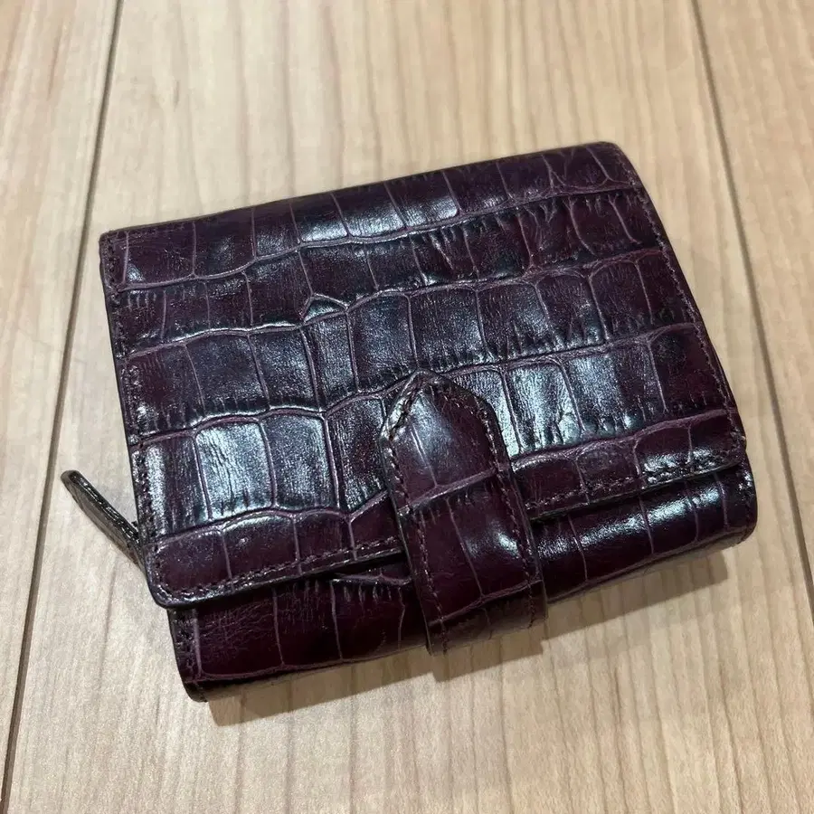 SAZABY 사자비 여성용 3단 폴더형 지갑 악어 무늬 와인 레드