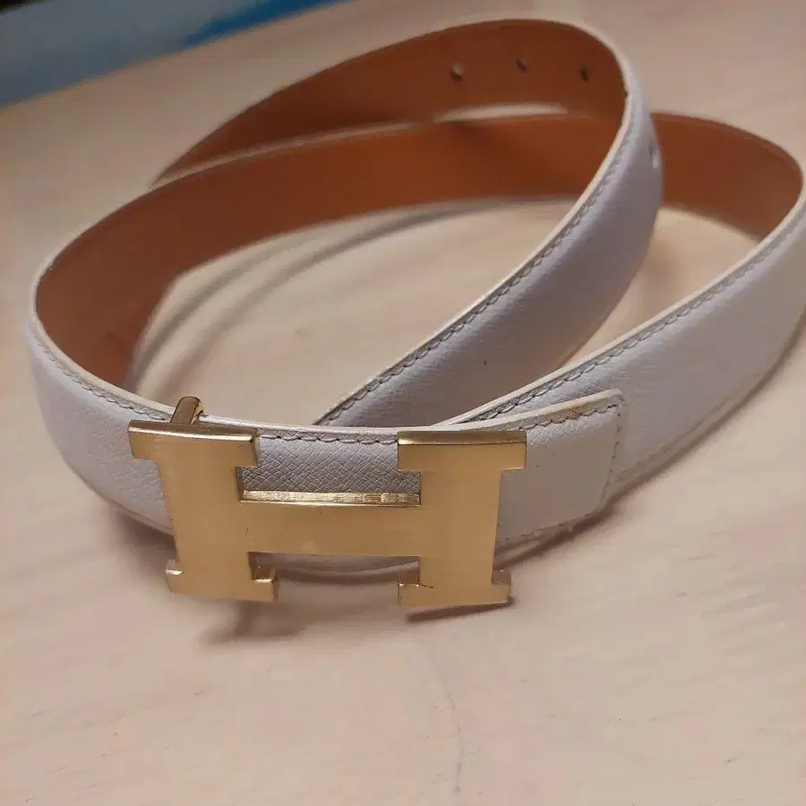 H 마크 화이트 가죽 H형 버클 벨트