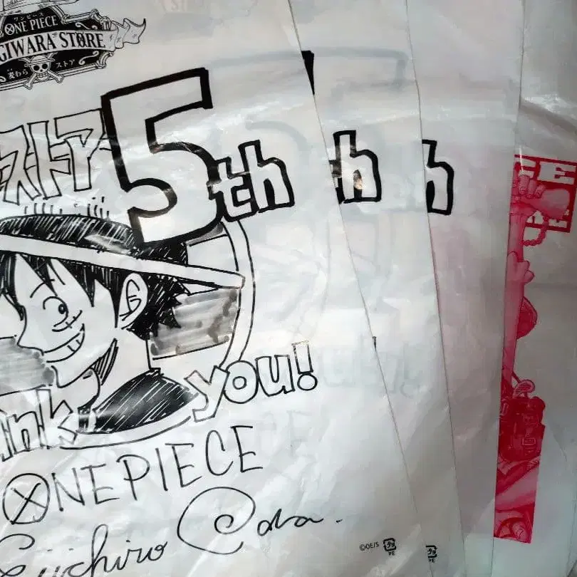 원피스 무기와라 스토어 5주년 쇼핑백 루피 3장+2장