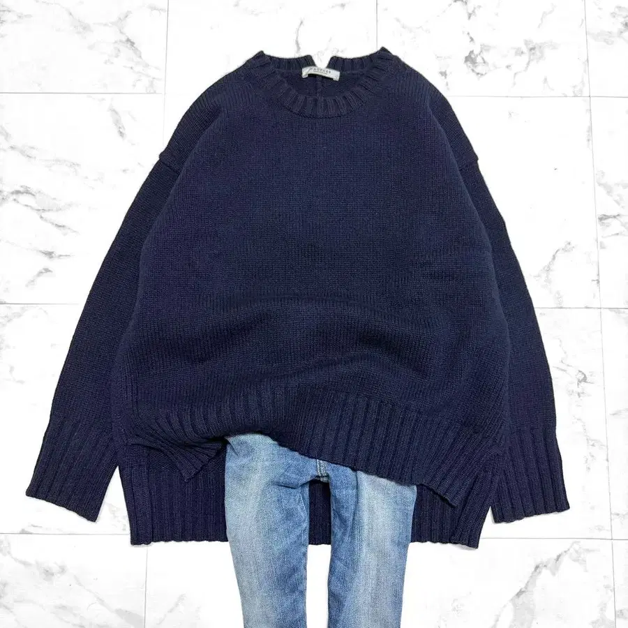 드로어 캐시미어 울 니트 긴팔 네이비