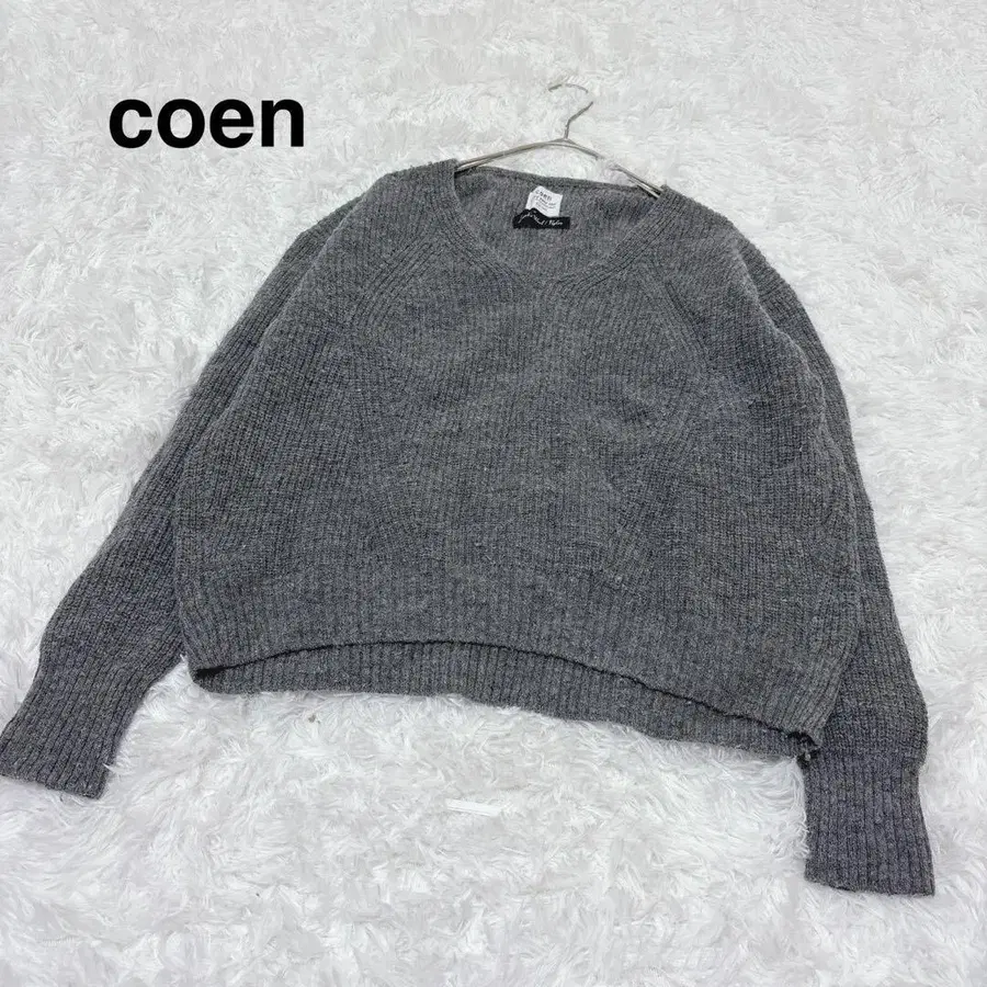[ 코엔 ] 긴팔 울 니트 스웨터 그레이 소매 리브 꽈배기 숏 기장