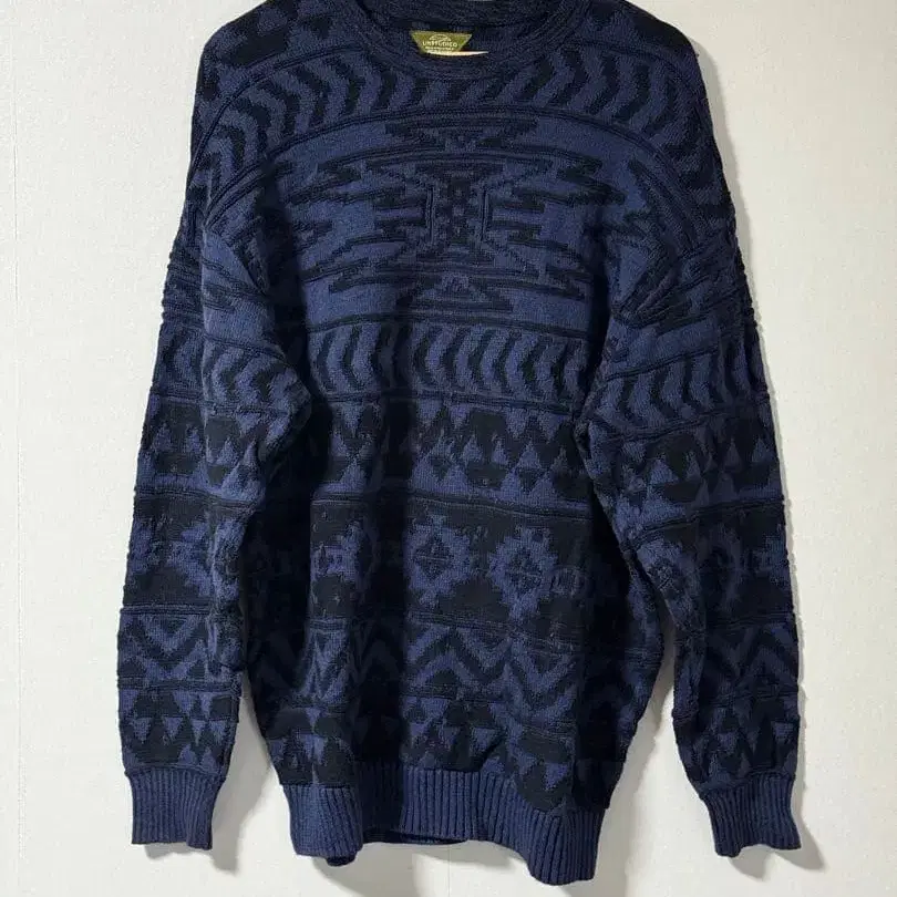 UNSTUDIED 네이비 기하학 패턴 니트 스웨터
