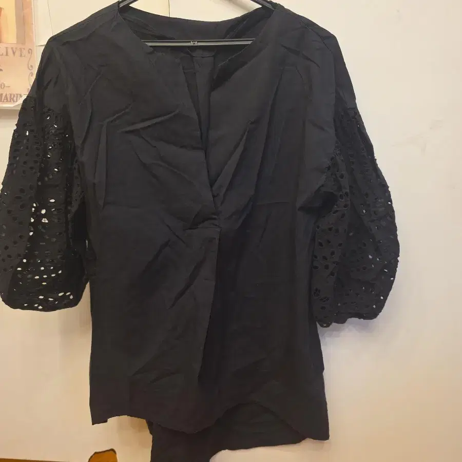블랙 레이스 소매 칠부 블라우스 L 사이즈