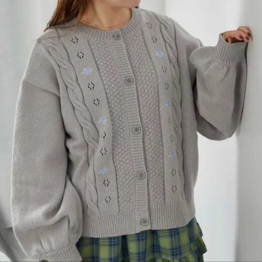 새상품 사만사 모스모스 에카 소포 꽃 자수 가디건 그레이
