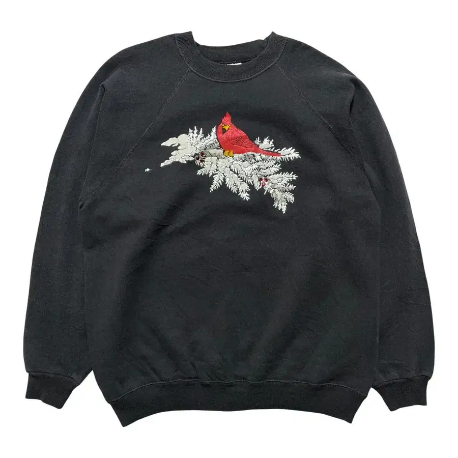 구제 의류 USA제 90S 빈티지 크루넥 맨투맨 트레이닝복 카디널 프린트 블랙 여성용 XL 애니멀 프린트 BD3145