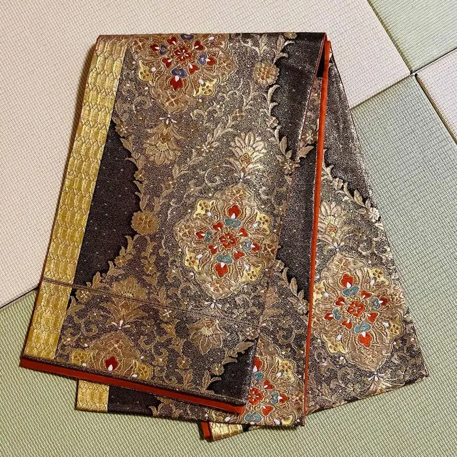 화려한 금실 자수 후쿠로 오비 금x블랙 손거울 f1228
