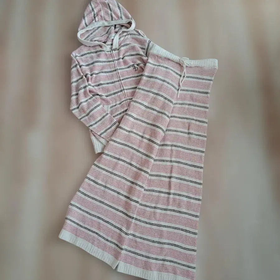 SNIDEL HOME 셋업 룸웨어 핑크 스트라이프 후드티
