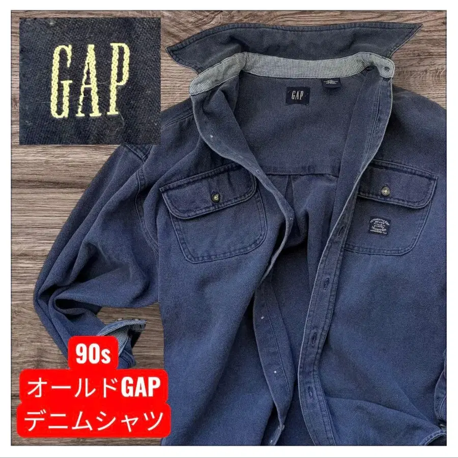 90s 올드 GAP 다크 블루 데님 셔츠 긴팔 7부 소매