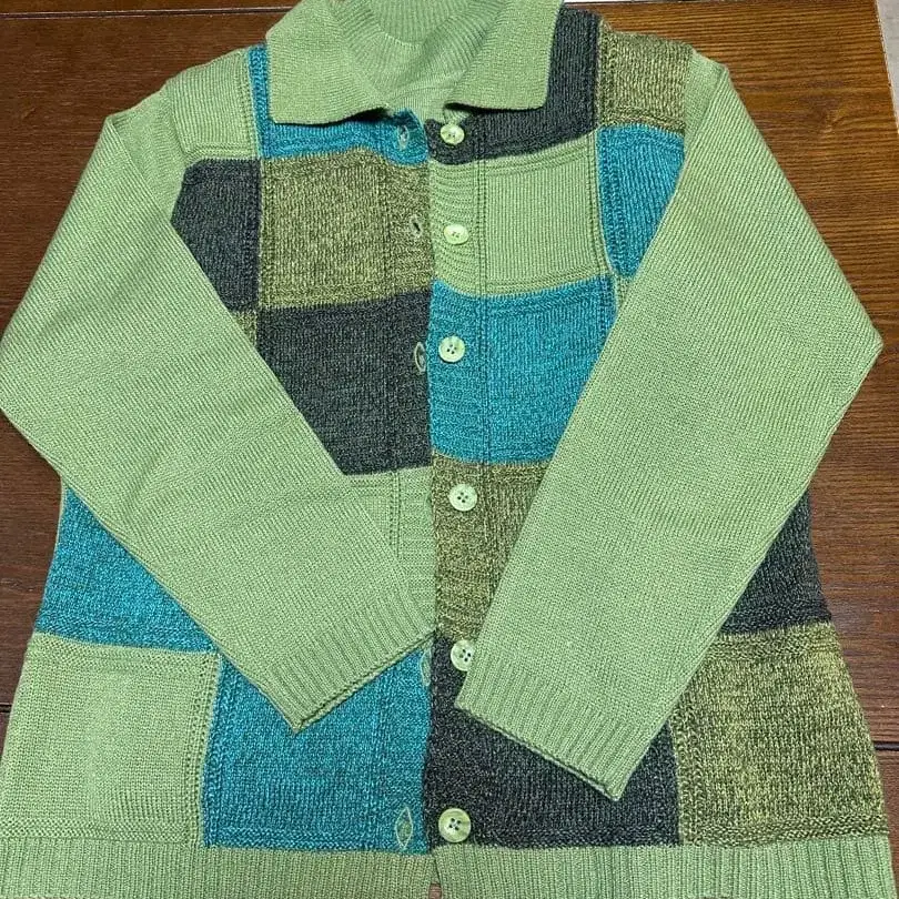 그린 계열 패치워크 앙상블 가디건과 스웨터