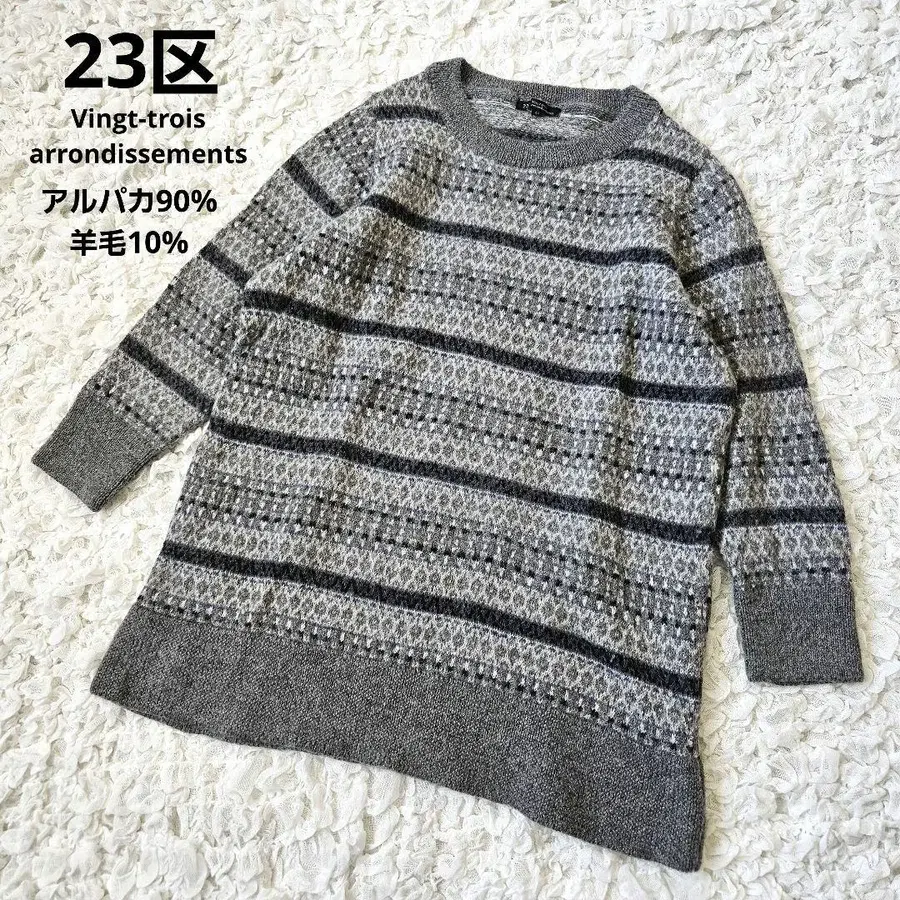 그레이 계열의 패턴 니트 스웨터, 긴팔 디자인으로 쾌적한 착용감 ☆