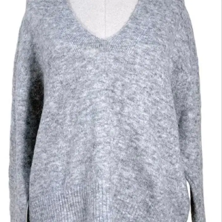 맥피 니트 티셔츠 상의 깊은 V넥 S 그레이 울 모헤어