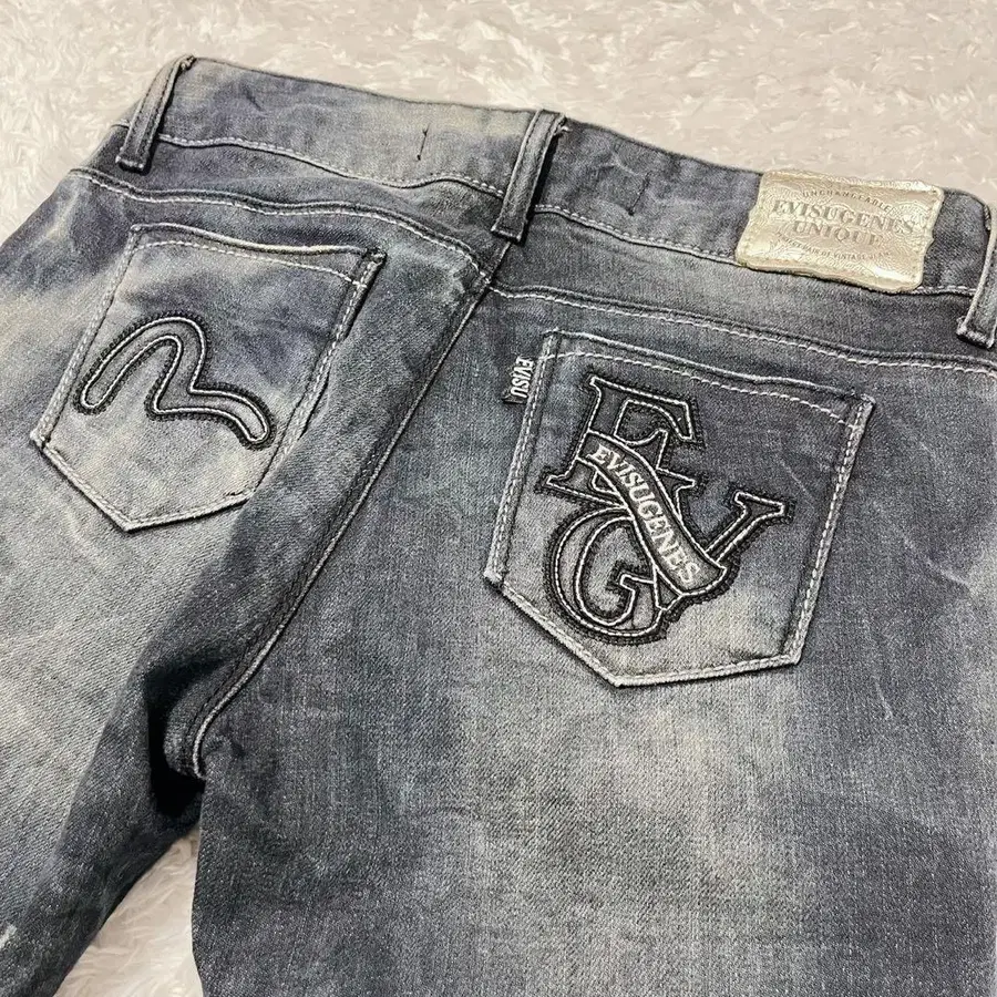 백 포켓에는 EVISU다운 로고 자수가 있습니다.